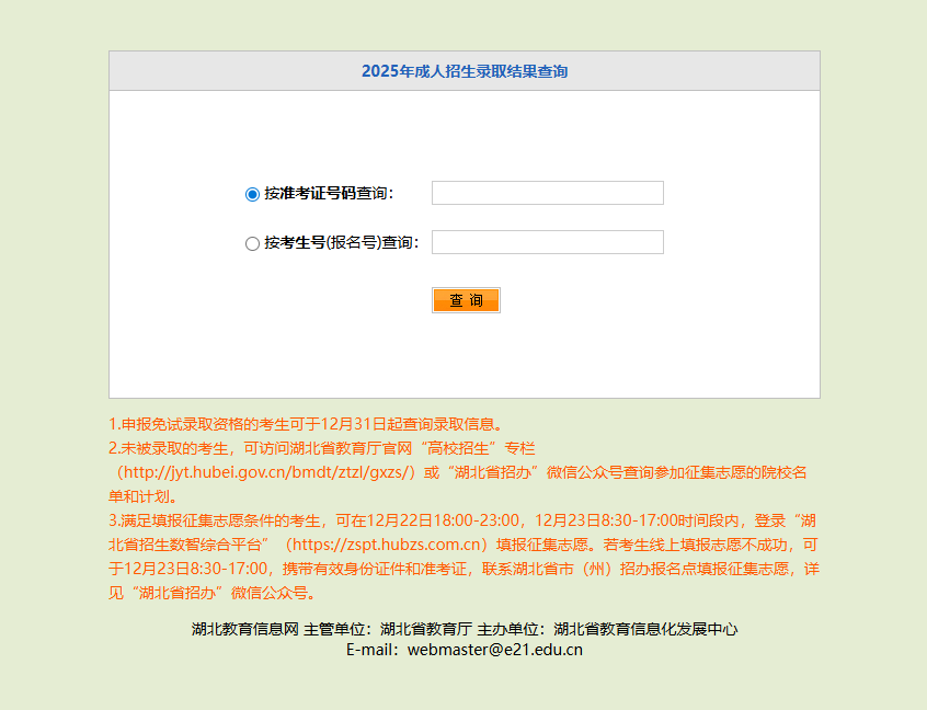 2025年湖北省成人高校招生实行网上录取,录取查询时间:12月19日已公布
