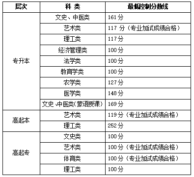 2025年我省成人高校招生考试评卷工作已经结束,根据教育部有关文件精神和我省今年招生计划、报名人数、考试成绩等情况,划定我省2025年成人高校招生录取最低控制分数线,现公布如下: